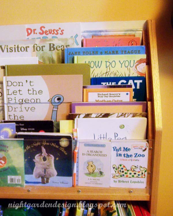 As previously mentioned, we keep a lot of books around. Our collection of kids' books is especially large, since I've been collecting continuously since I was a kid myself. The seven years I spent in bookstores increased this collection exponentially, and now that there's an actual child in the house, the need for book storage has gotten critical.